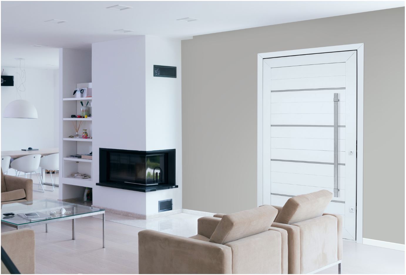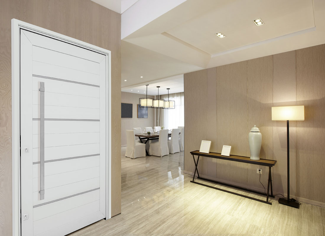 Porta Pivotante Lambris C/Friso e Puxador Acab. Branco 223,5×126,2×12